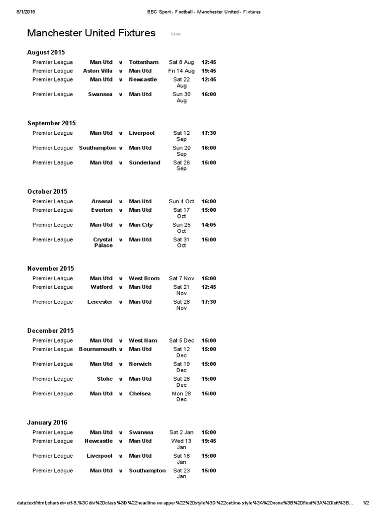 Get manchester united fc match schedule (fixtures) and reports. The red devils, who finished third last season, will not face burnley on what is the season's start date. View manchester united fc scores, fixtures and results for all competitions on the official website of the premier league. All matches cup matches league matches. Manchester united scores, results and fixtures on bbc sport, including live football scores, goals and goal scorers.